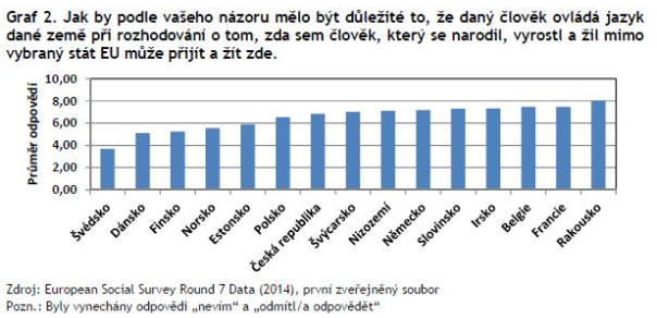 Dále byla zjišťována úloha toho, jestli příchozí ovládají jazyk dané země. Zde vidíme, že zvládnutí jazyka, který je důležitý pro vstup na trh práce, je nejdůležitější v Rakousku, Francii a Belgii. Naproti tomu nejméně důležité je to ve Švédsku, Dánsku a Finsku. Česká republika dosahuje průměrných hodnot, jazyk imigranta tedy není považován za výrazně důležitý ve srovnání s ostatními státy.