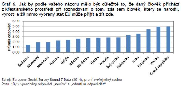 Vliv toho, zda daná osoba pochází z křesťanského prostředí, je nejdůležitější v České republice, Polsku a Estonsku. Oproti tomu nejméně důležité je ve Švédsku, Nizozemí a Německu. Zde již Česká republika dosahuje krajních hodnot a původ z křesťanského prostředí je v našem státě častěji považován za důležitou charakteristiku imigranta než v jiných státech Evropy.