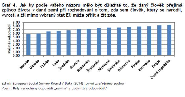 Fakt, že je nově příchozí na území daného státu běloch, je nejdůležitější v České republice, Estonsku a Polsku. Oproti tomu nejméně důležité je v Švédsku, Německu a Nizozemí. Obyvatelé České republiky považují fakt, že je imigrant běloch podobně v předchozím případě za další důležitý aspekt.